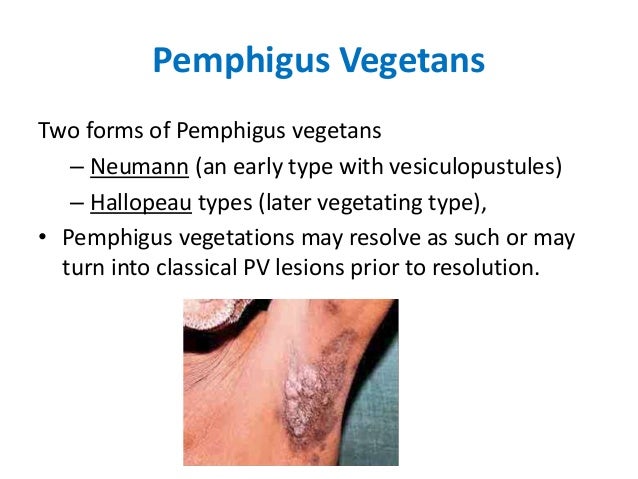 Pemfigus vejetans otoimmün bir hastalık olan pemfigusun en nadir görülen formudur. Tüm pemfigus hastalarının %1-2sinde görülür.